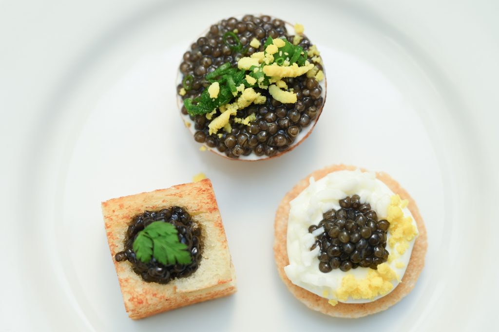 จากซ้าย Caviar Oscietra, Caviar Vintage และ IGP Caviar d’Aquitaine (The New Standard)