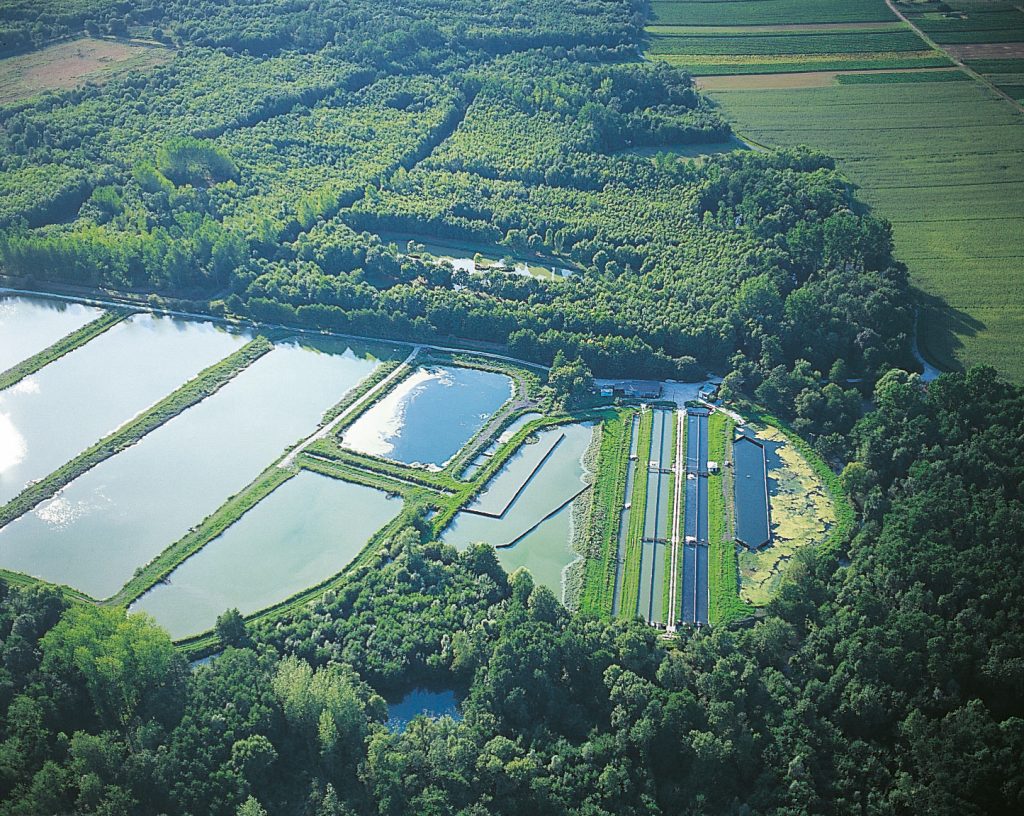 ฟาร์มเพาะเลี้ยงปลาของบริษ้ท Sturia ในภูมิภาคอากีแตน ทางตะวันตกเฉียงใต้ของประเทศฝรั่งเศส